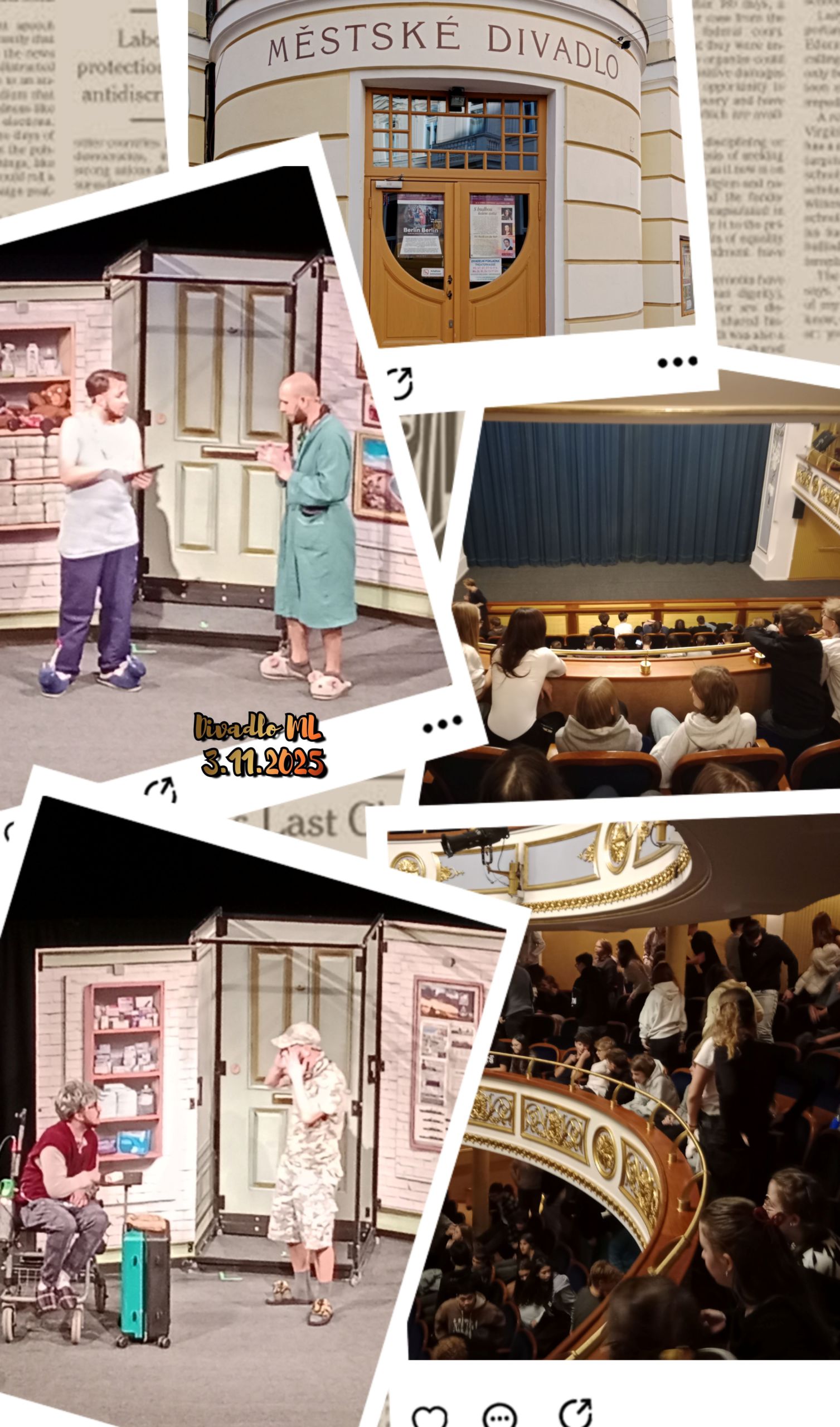 Dne 3. listopadu 2025 se žáci tříd 2.A, 3.D a nástavbové studium naší Hotelové školy Mariánské Lázně zúčastnili anglického divadelního představení „UNITED NEIGHBOURS OF LONDON“ v Městském divadle Mariánské Lázně.