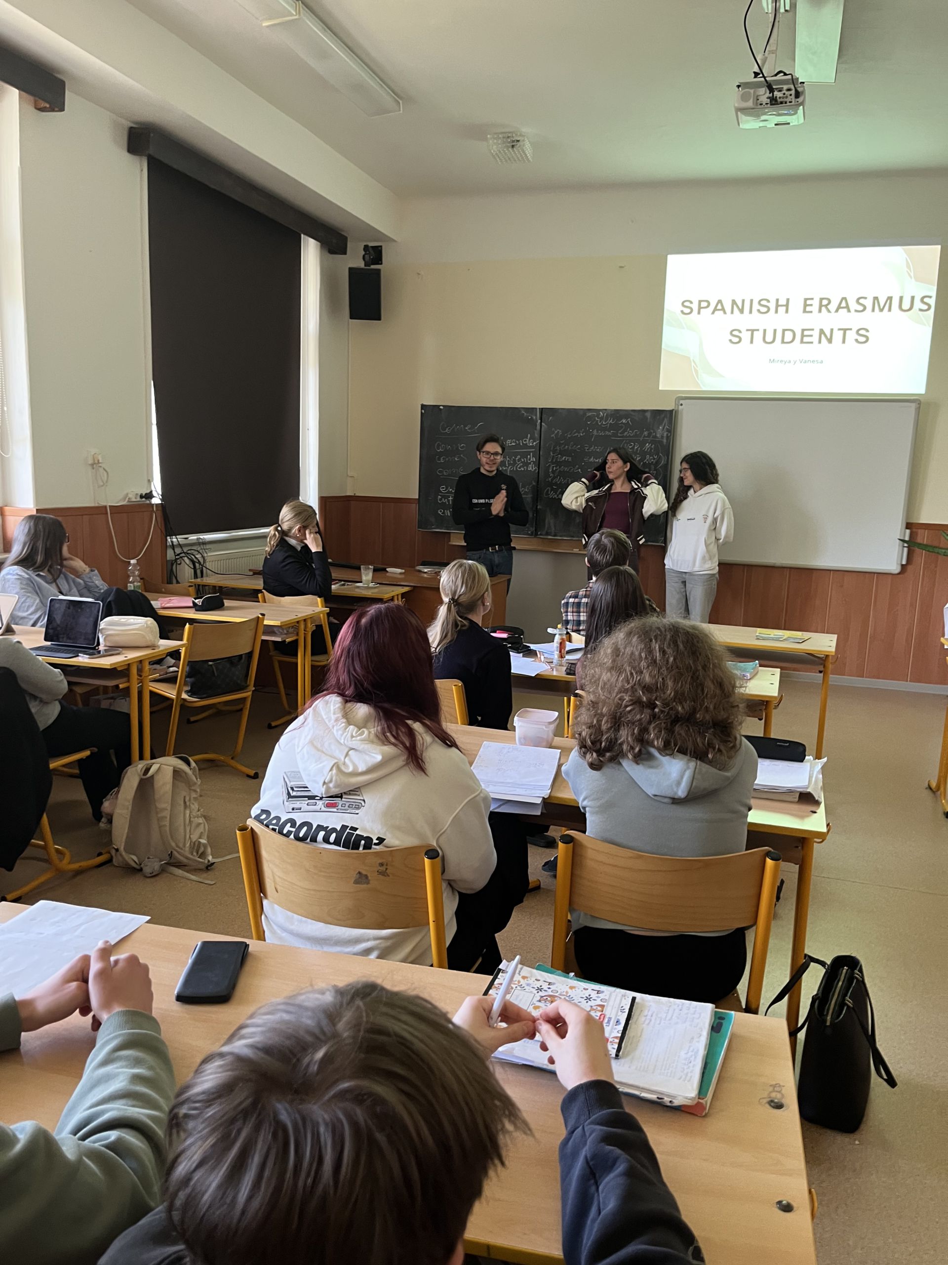 Dne 22. dubna 2026 proběhla na naší škole mezinárodní výuková aktivita zaměřená na interaktivní výuku anglického a španělského jazyka, doplněná o prezentace o studiu v zahraničí a programu Erasmus+.
