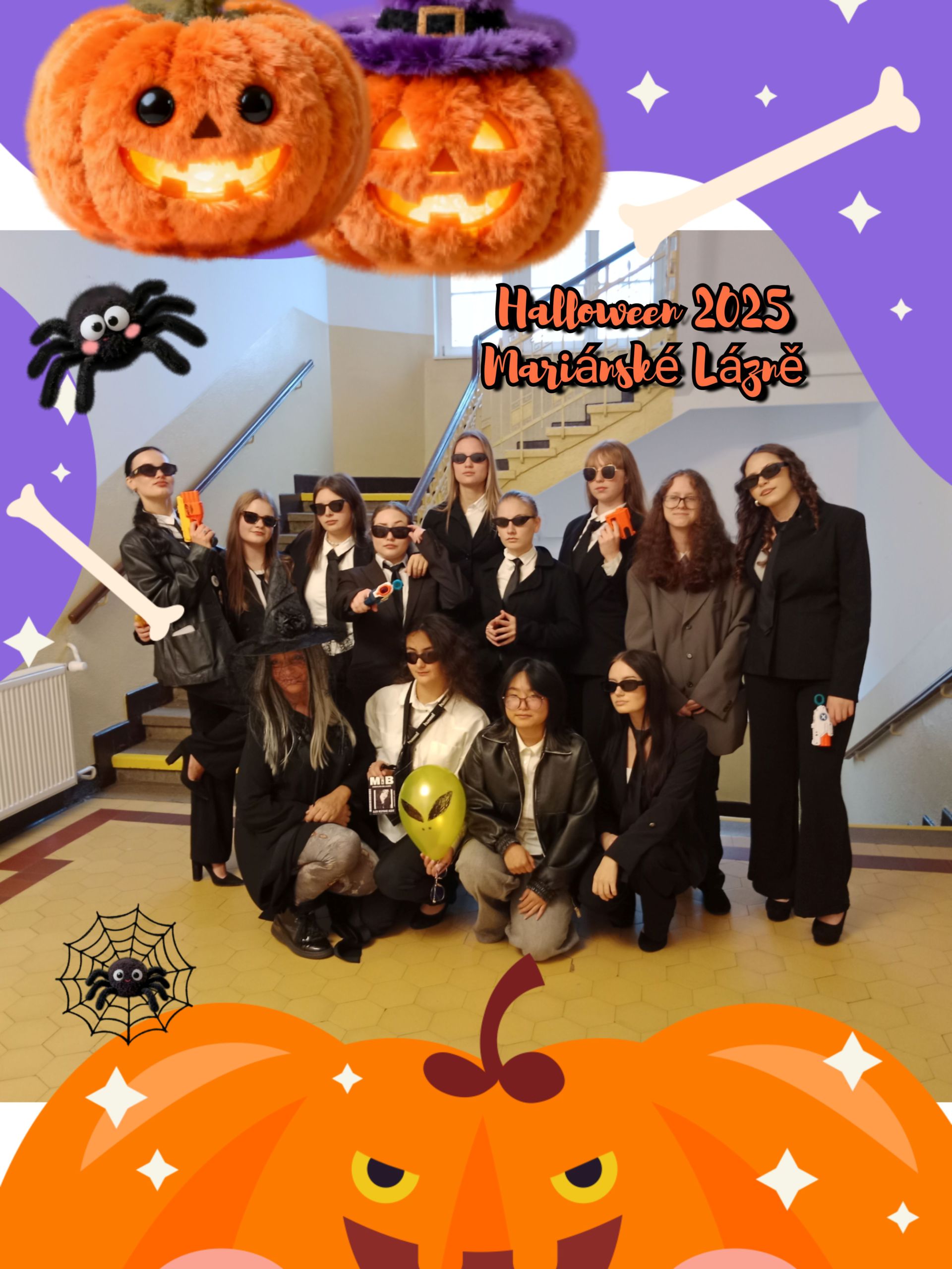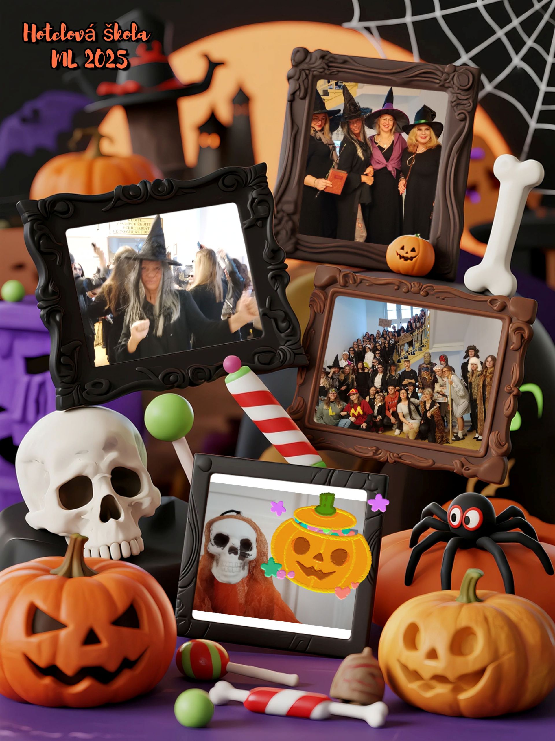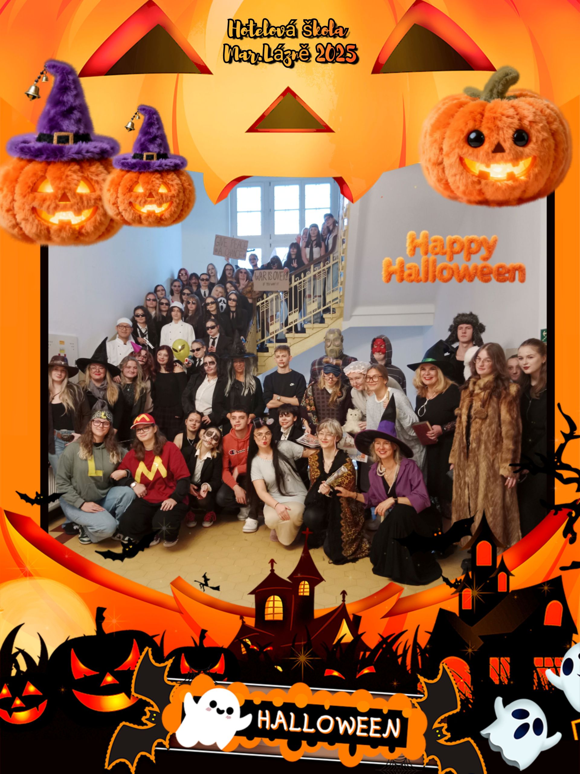 Dne 22. října 2025 se na Hotelové škole Mariánské Lázně uskutečnila tradiční oslava Halloweenu, které se s nadšením zúčastnili žáci i pedagogové. Akce poskytla žákům příležitost projevit svou fantazii a originalitu při tvorbě nejrůznějších kostýmů a masek, zároveň však nahlédnout do zajímavé historie a tradic tohoto svátku. Halloween se stal na naší škole nejen zábavným, ale také společensky obohacujícím dnem, kdy žáci i učitelé, především paní učitelky Mgr. Jeřábková a Mgr. Kuchariková, spojili síly při přípravách, organizaci i samotné realizaci programu.