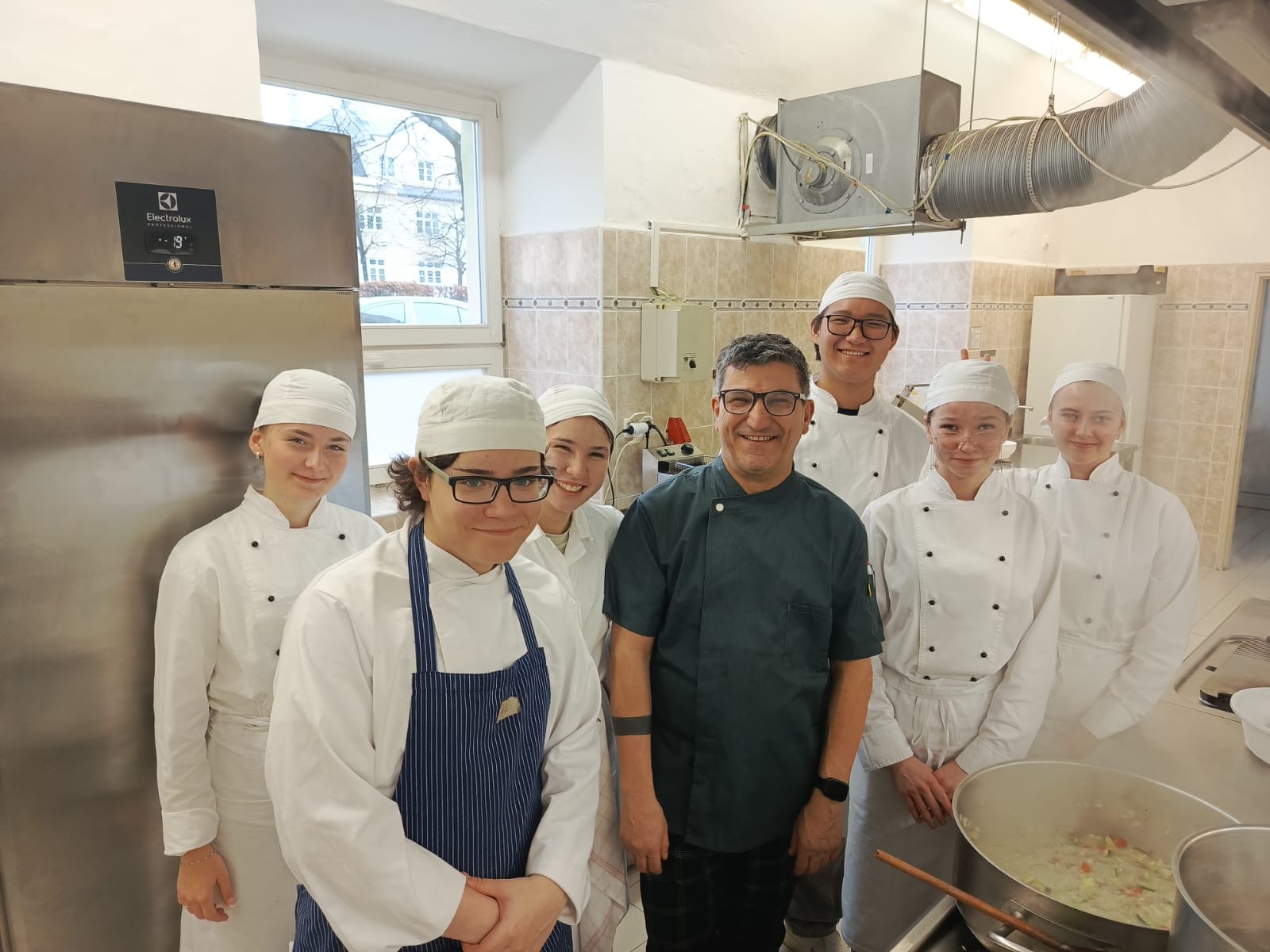 Dne 17. prosince 2025 proběhl na Hotelové škole v Mariánských Lázních další kulinářský workshop vedený šéfkuchařem Robertem Angionim, tentokrát zaměřený na italskou a španělskou kuchyni.