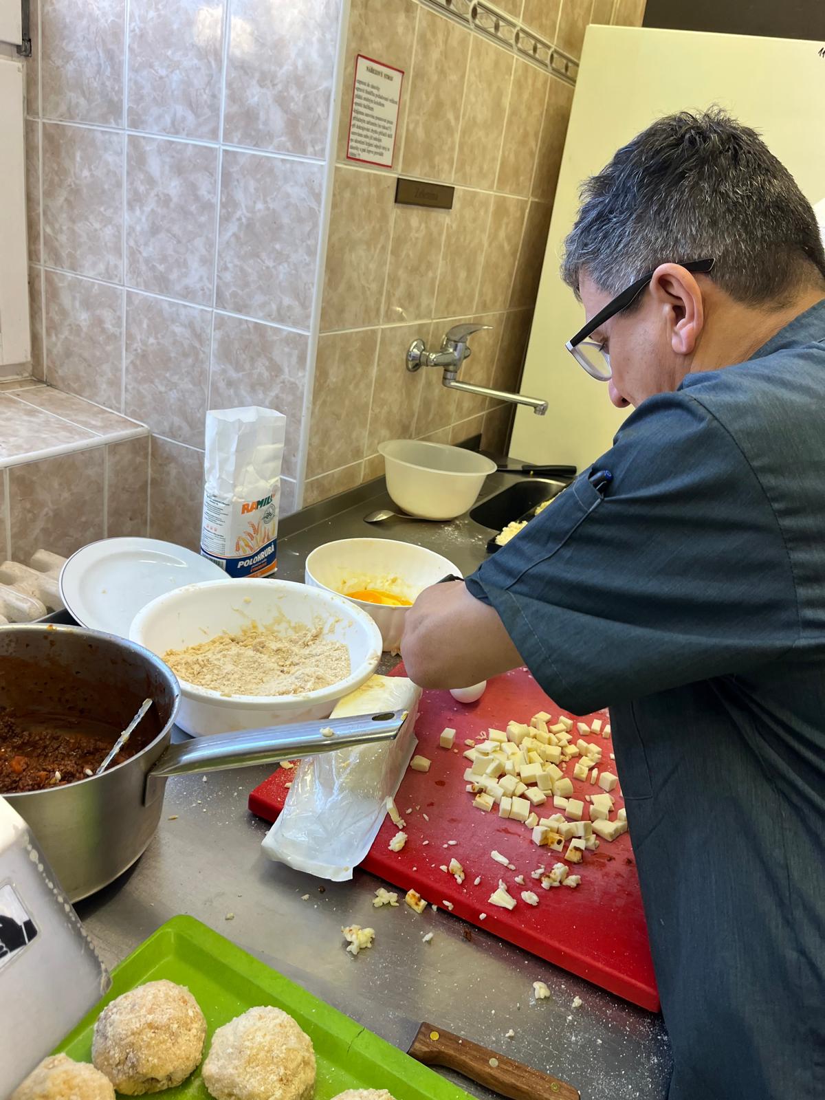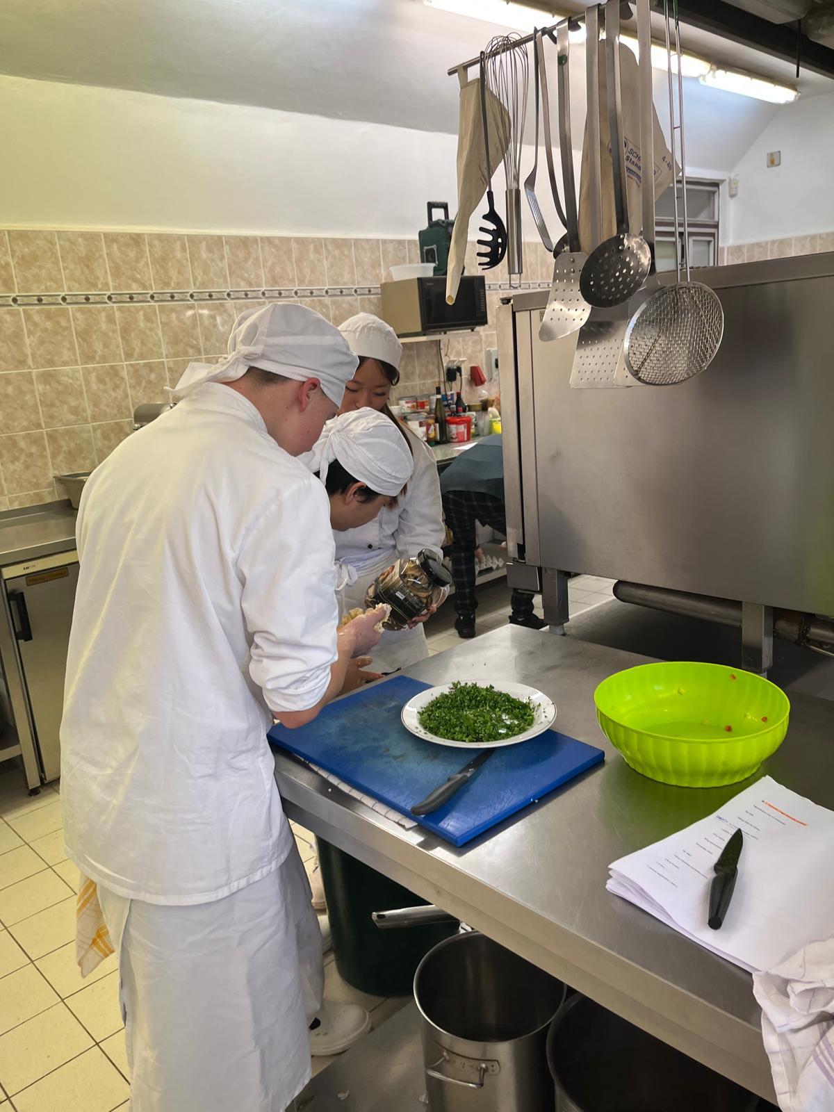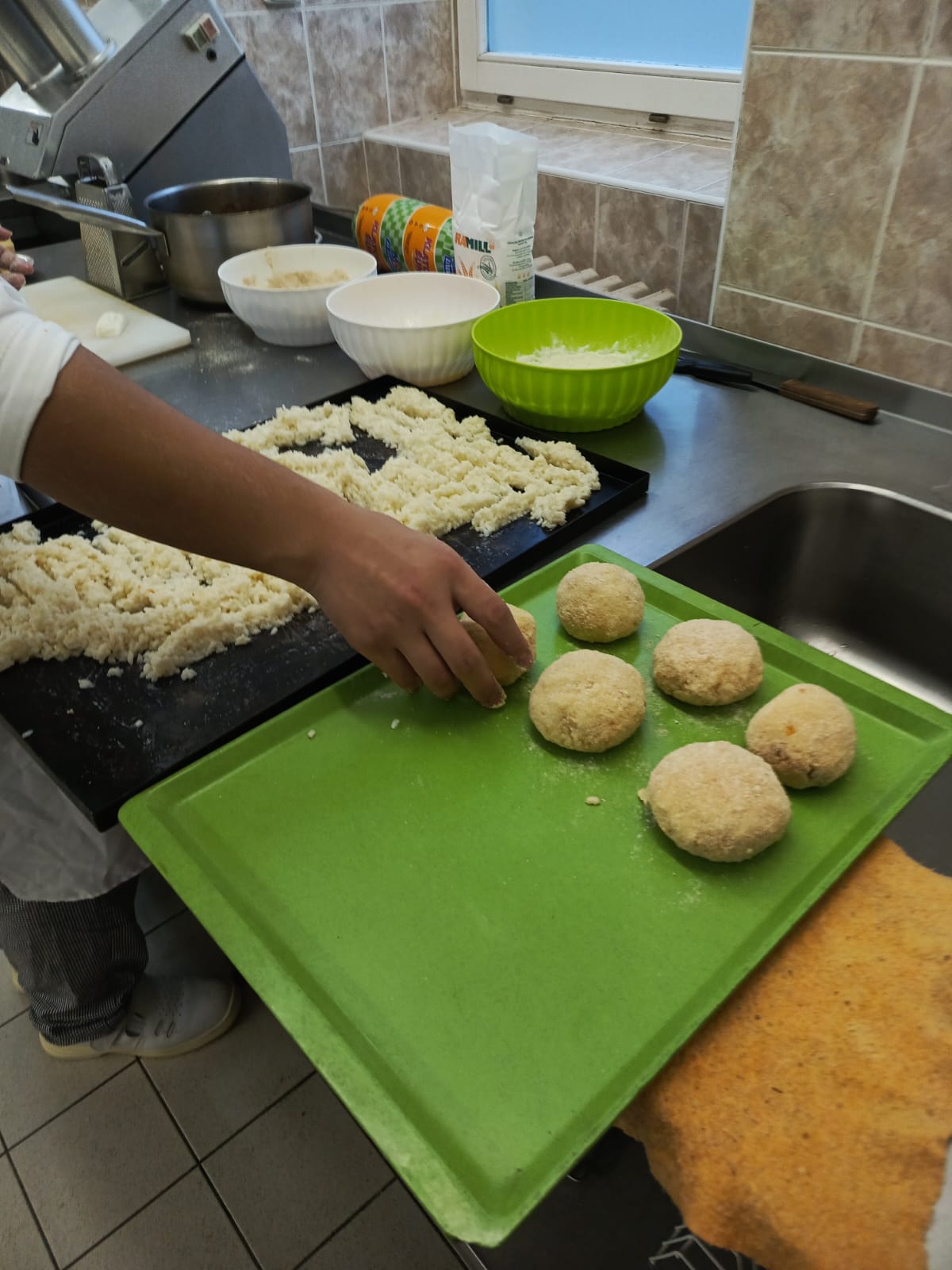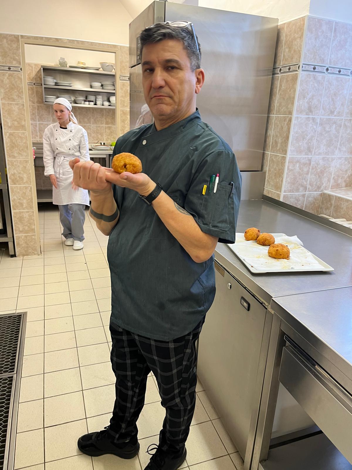 Vaření začalo v italském duchu. Žáci tříd 2.A a 1.A si vyzkoušeli přípravu několika variant rizota – s chřestem, s hříbky a tradiční Milánské rizoto. Součástí programu byly také arancini, typická sicilská specialita, a to hned ve třech variantách: