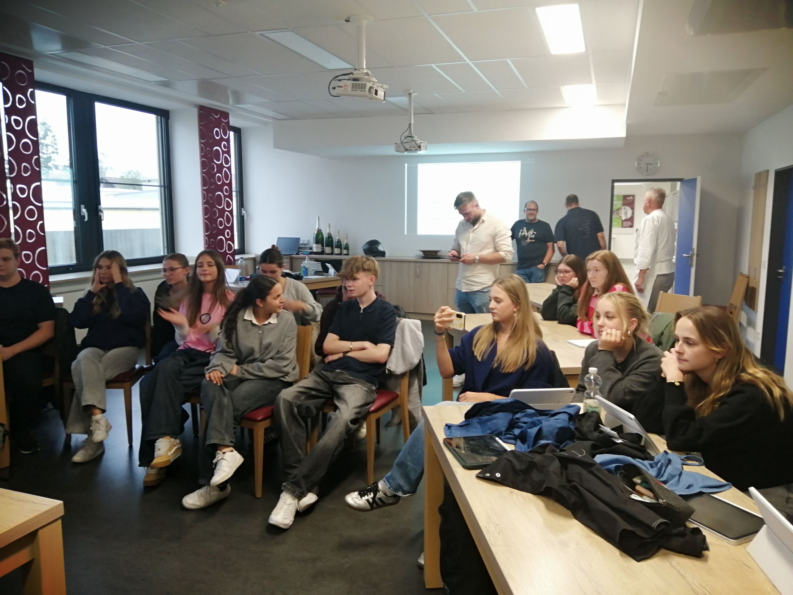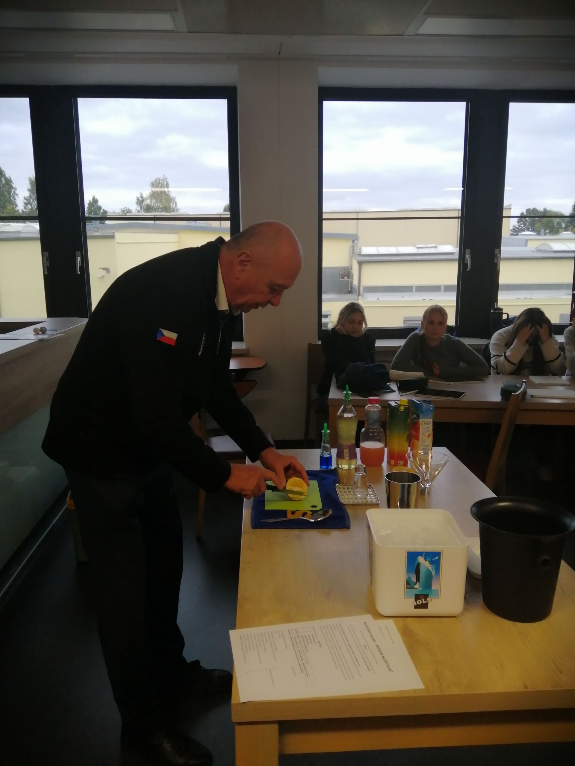 Po přivítání ředitelem školy panem Thomasem Metzlerem, ředitelem pro hotenictví a turismus panem André Putzlocherem a manažerem pro zahraniční styk panem Alexem Sollfrankem proběhla u šálku kávy příjemná rozprava o obdobných radostech i starostech se vzděláváním nové generace gastronomů a naší další spolupráci. Poté se hostitelé pochlubili s novou přestavbou interiéru školy, vybavením kuchyní a restaurací. Následoval přesun do výukové místnosti s barem. Zde pan Javorský žákům předvedl samotnou přípravu soutěžního nápoje. Žáci z Wiesau ji nadšeně sledovali a po malé ochutnávce si jedna dívka drink pod dohledem pana Javorského i sama připravila. Mistru odborného výcviku Wiesau jsme přenechali v německém jazyce propozice soutěže i technologický postup přípravy nápoje.