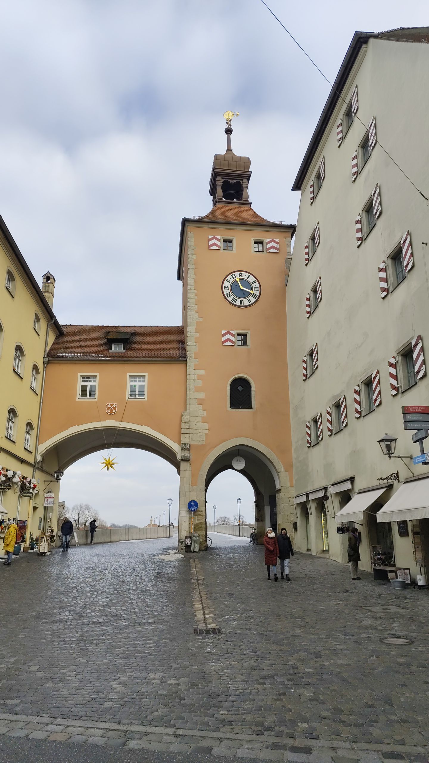 Toto bohaté středověké město leží na mohutném toku řeky Dunaje. A právě zde jsme začali naši plánovanou procházku po úchvatném nejstarším kamenném mostě, na jehož konci nás čekala návštěva turistického centra. Zde jsme vyslechli překvapivě v německém jazyce 😉 poutavou prezentaci o historii i současnosti města. Rádi bychom touto cestou poděkovali za přátelské přijetí a suvenýry panu Bernardovi, jehož výklad nás svou živostí velmi zaujal.