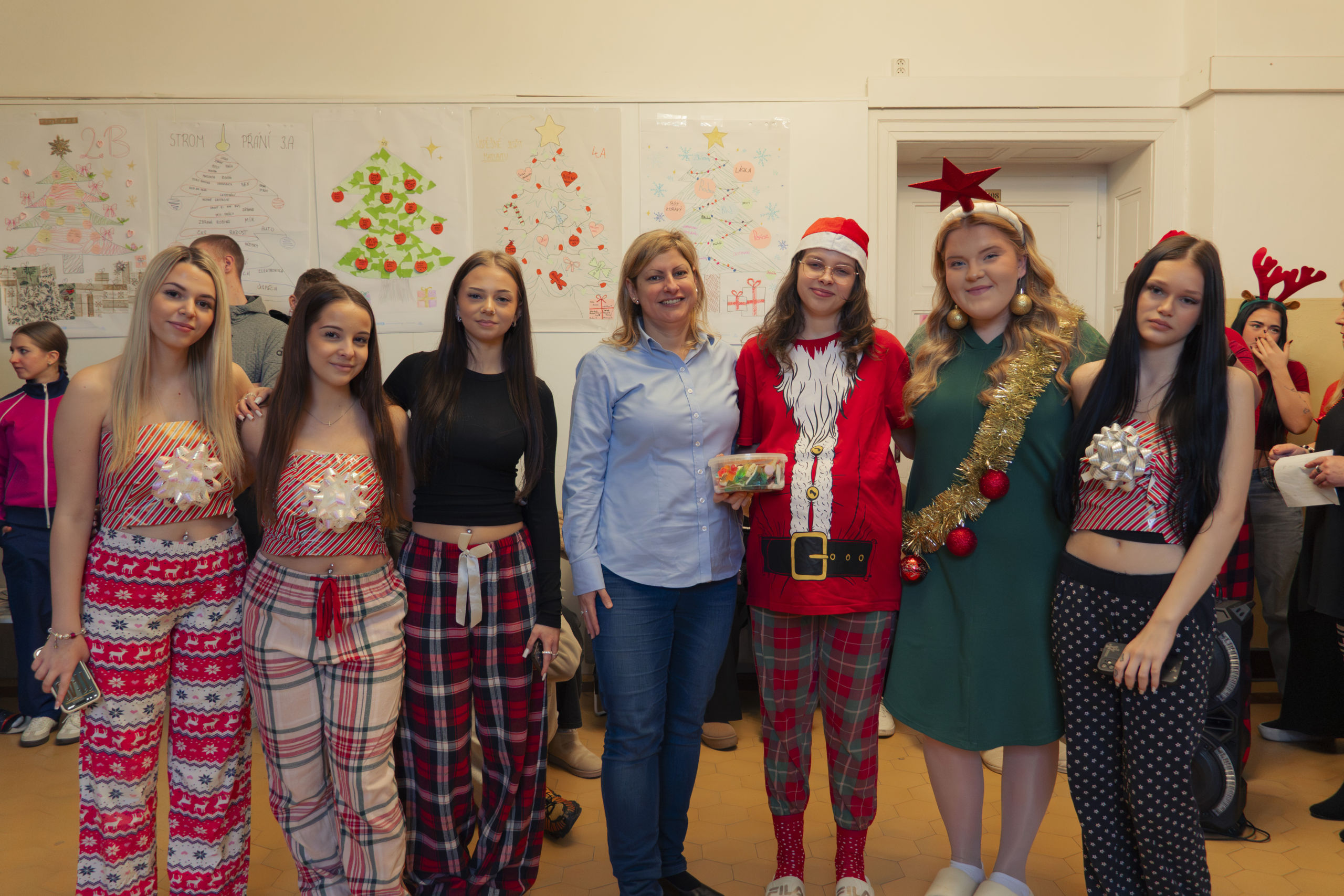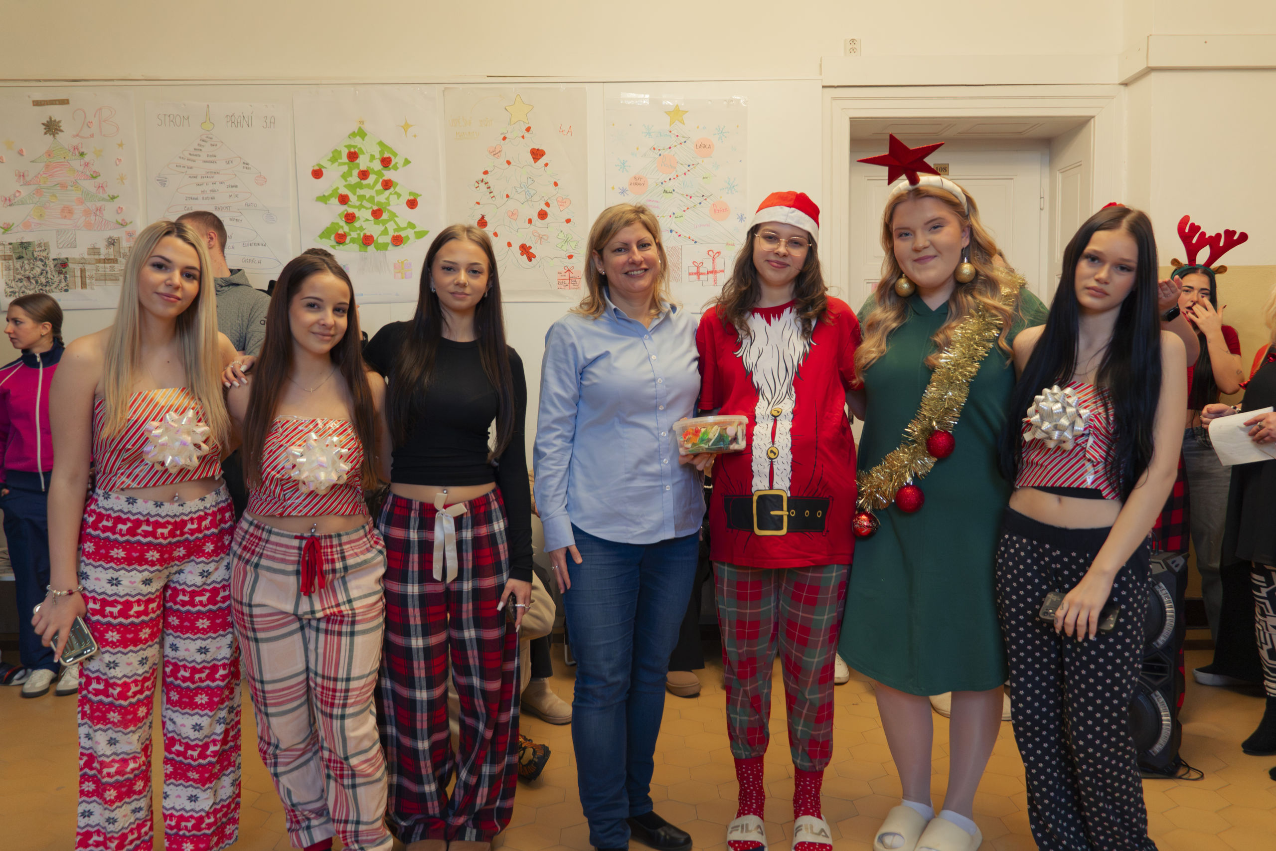 První dvě hodiny byly strávené v kmenových třídách s třídními učiteli, kde se všichni vánočně naladili a mnozí si předali vkusné, ale i místy komické dárky.